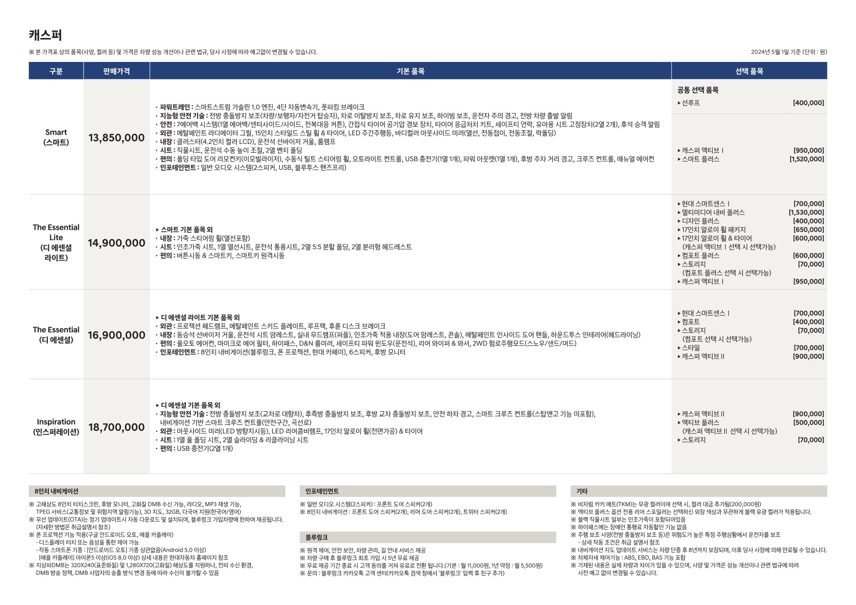 | 2024년 10월 캐스퍼 신차가격표 (더 뉴 캐스퍼 출시) The New CASPER (0) | 2025.10.16 |